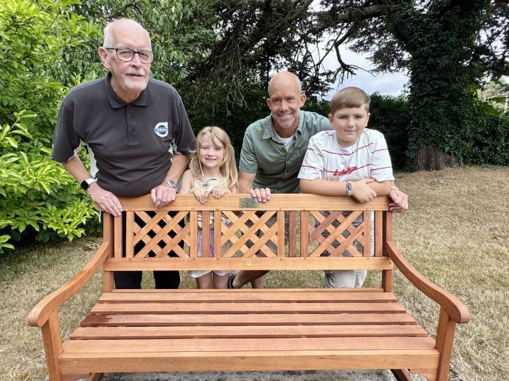 Mike Gillard with son Chris and grandchildren Seth and Violet with the new bench